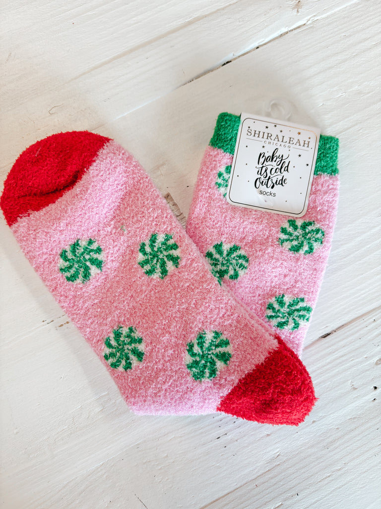 Fuzzy Peppermint Socks